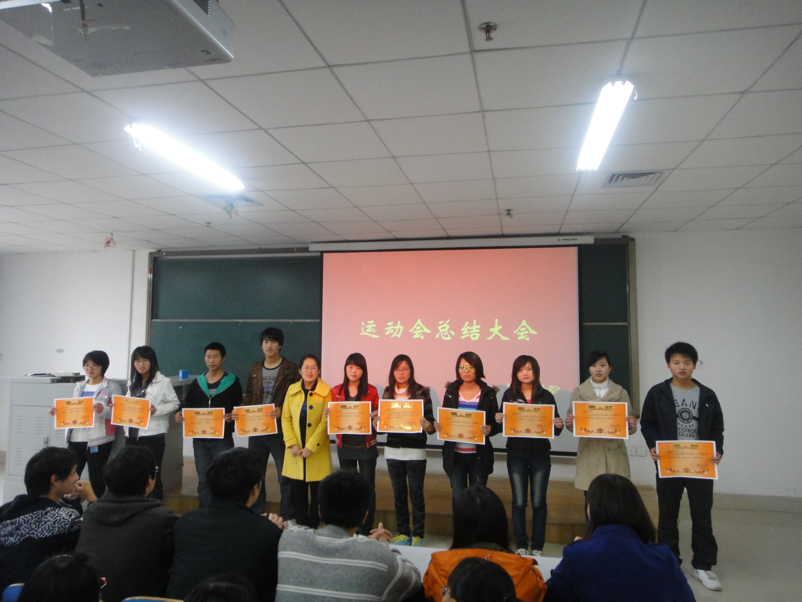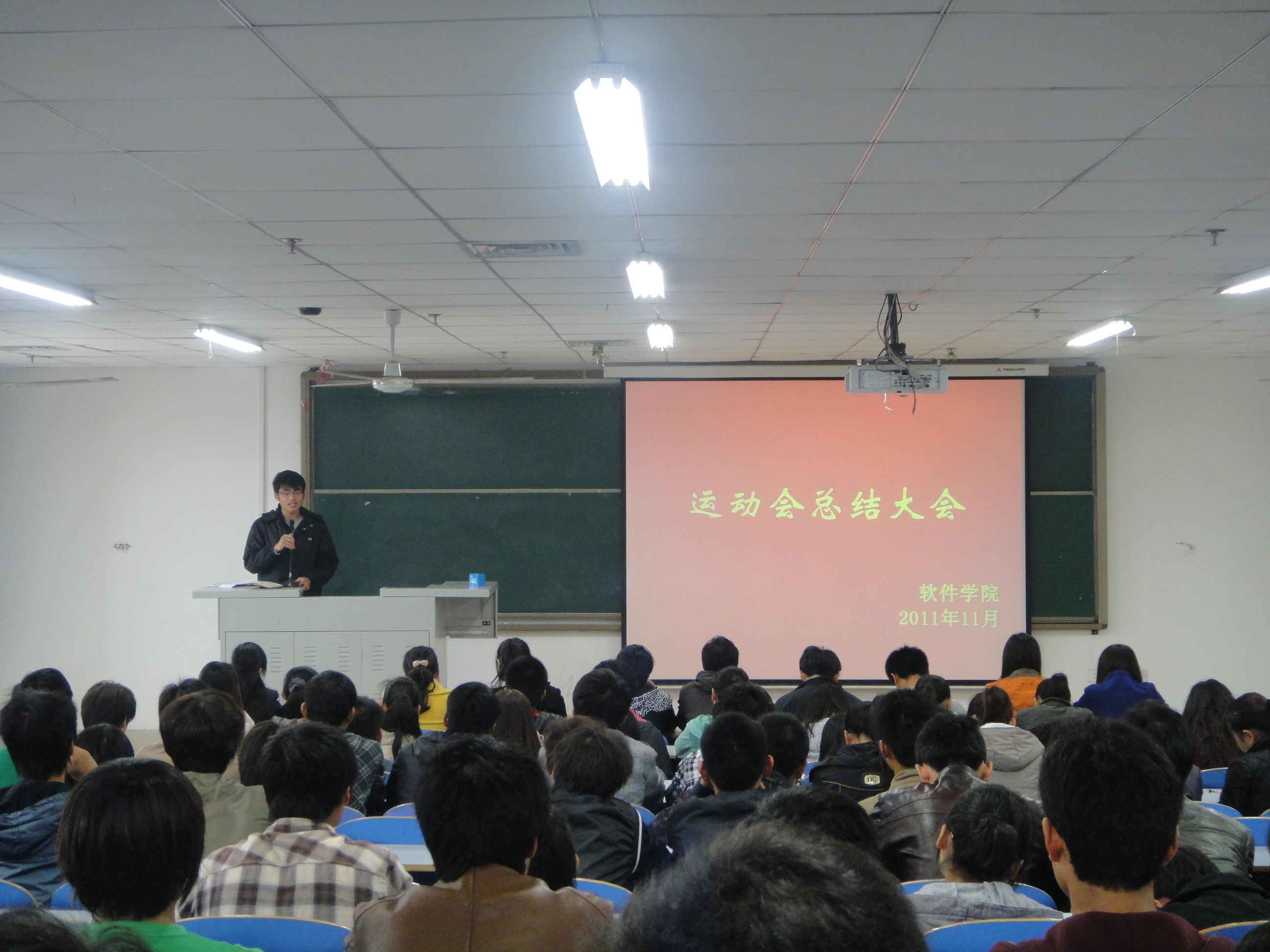 我校科学校区第二届田径运动会已圆满结束,为巩固成果,表彰先进,2011年11月3日下午,软件学院在科学校区电教楼306召开了科学校区第二届运动会总结表彰大会。软件学院分团委老师,全体学生会成员,各班班委以及运动员参加了大会。