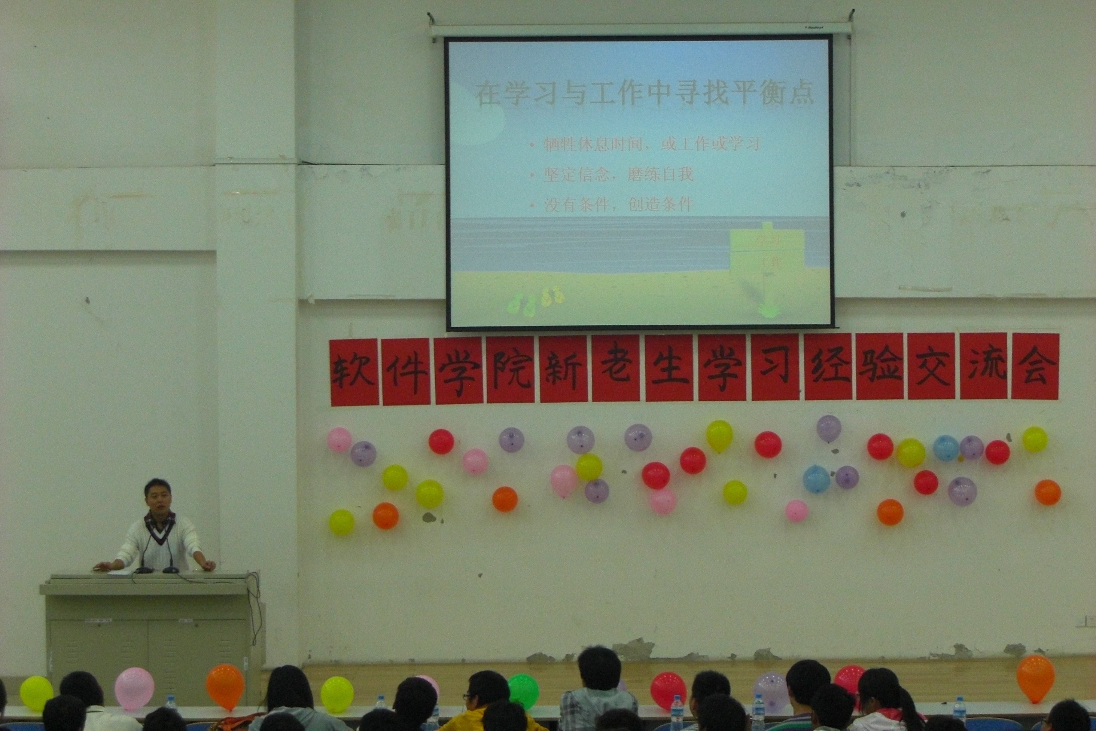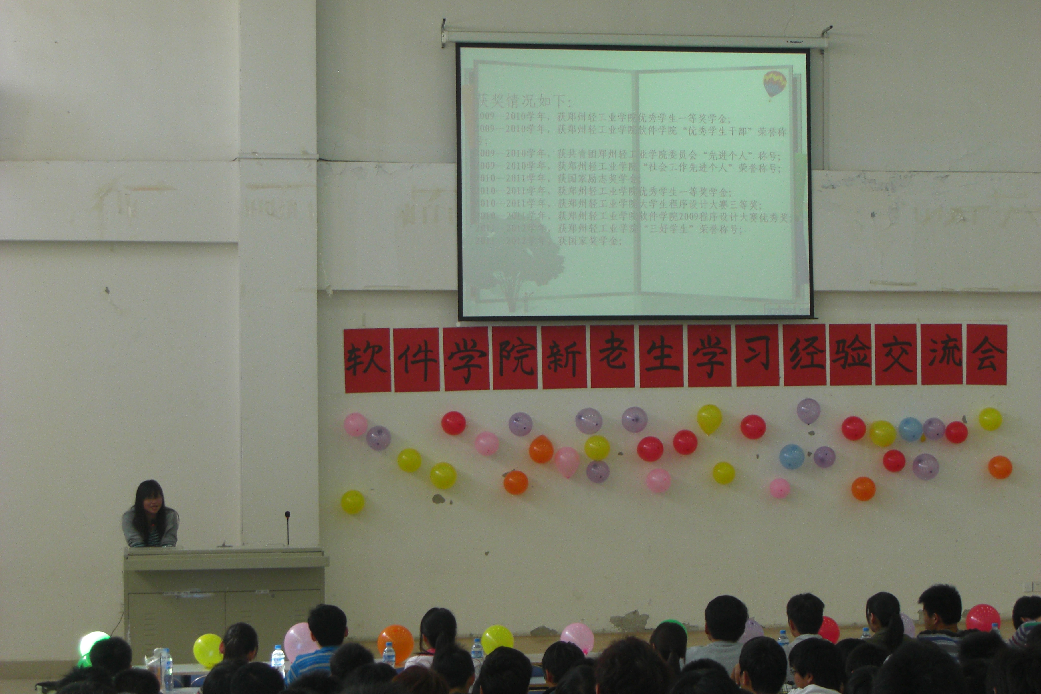 为帮助11级新生尽快适应大学的学习生活,激励新生以高年级优秀学生代表为榜样立志成才,软件学院于10月16日下午在科学校区电教楼408分别对11级本、专科学生举办了两场新老生经验交流会。高年级获得国家奖学金、励志奖学金、校内奖学金的优秀学生代表和11级全体新生参加了此次学习经验交流会。