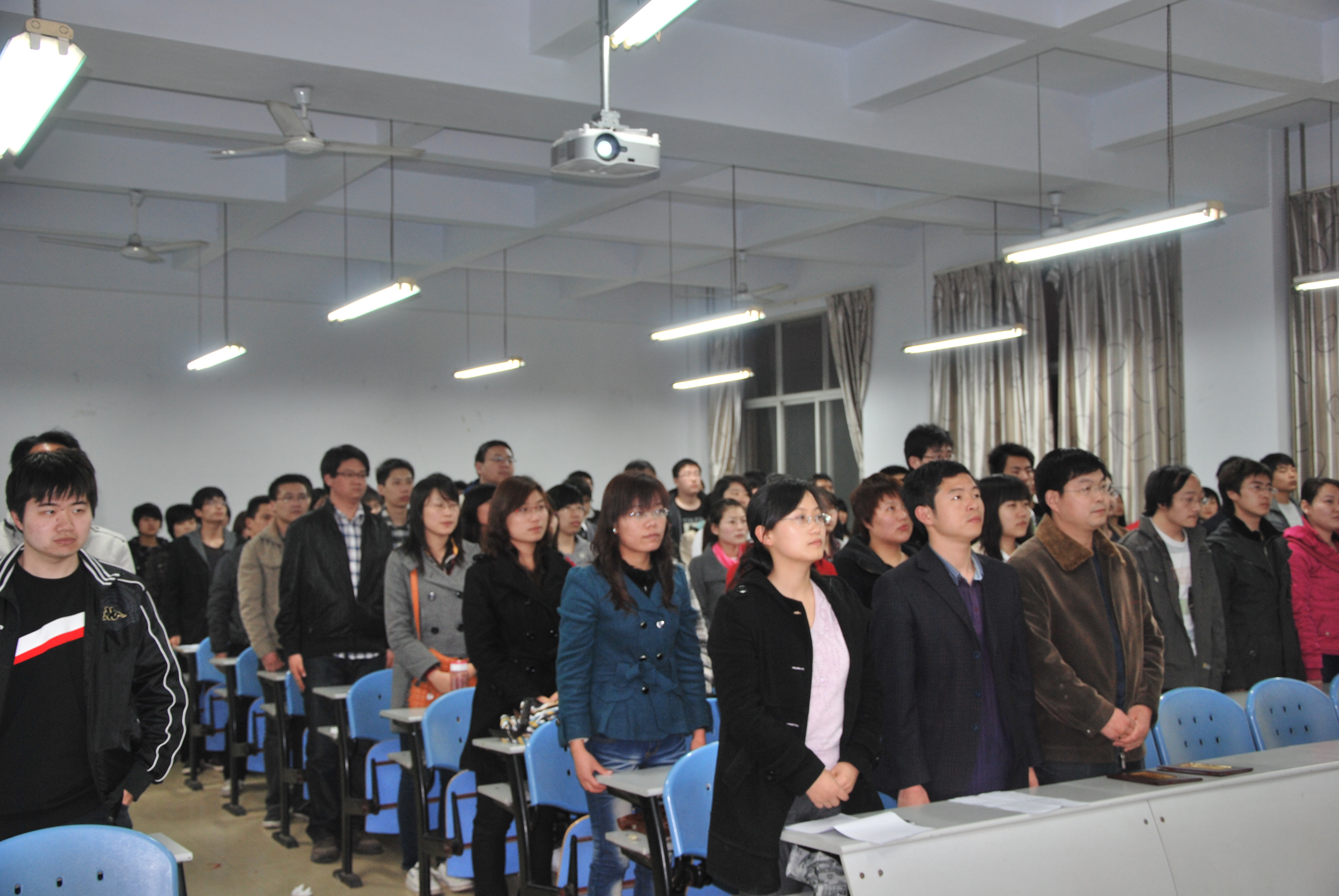 会议在庄严的国歌声中拉开序幕。首先,全体党员肃立垂手默哀一分钟,为玉树地震中的遇难者举哀,为生者祈福。接着,康国磊老师对学生党员提出了要加强理论学习、提高党性素养的具体要求:要求学生党支部完善学习制度、丰富学习内容、创新学习方法,努力把学生党支部建设成为学习型党组织;要求学生党员树立重视学习、善于学习、终身学习的观念,自觉学习社会主义核心价值体系,自觉学习党的路线方针政策和国家法律法规,自觉学习现代化建设所需要的各方面知识,不断自身提高理论素养和知识素养。康国磊老师同时教育大家无论是在大灾大难、大是大非面前,还是在日常的学习生活中,都要真正起到先锋模范带头作用,用实际行动带动身边其他同学,为构建和谐校园,为祖国的建设贡献一份力量。