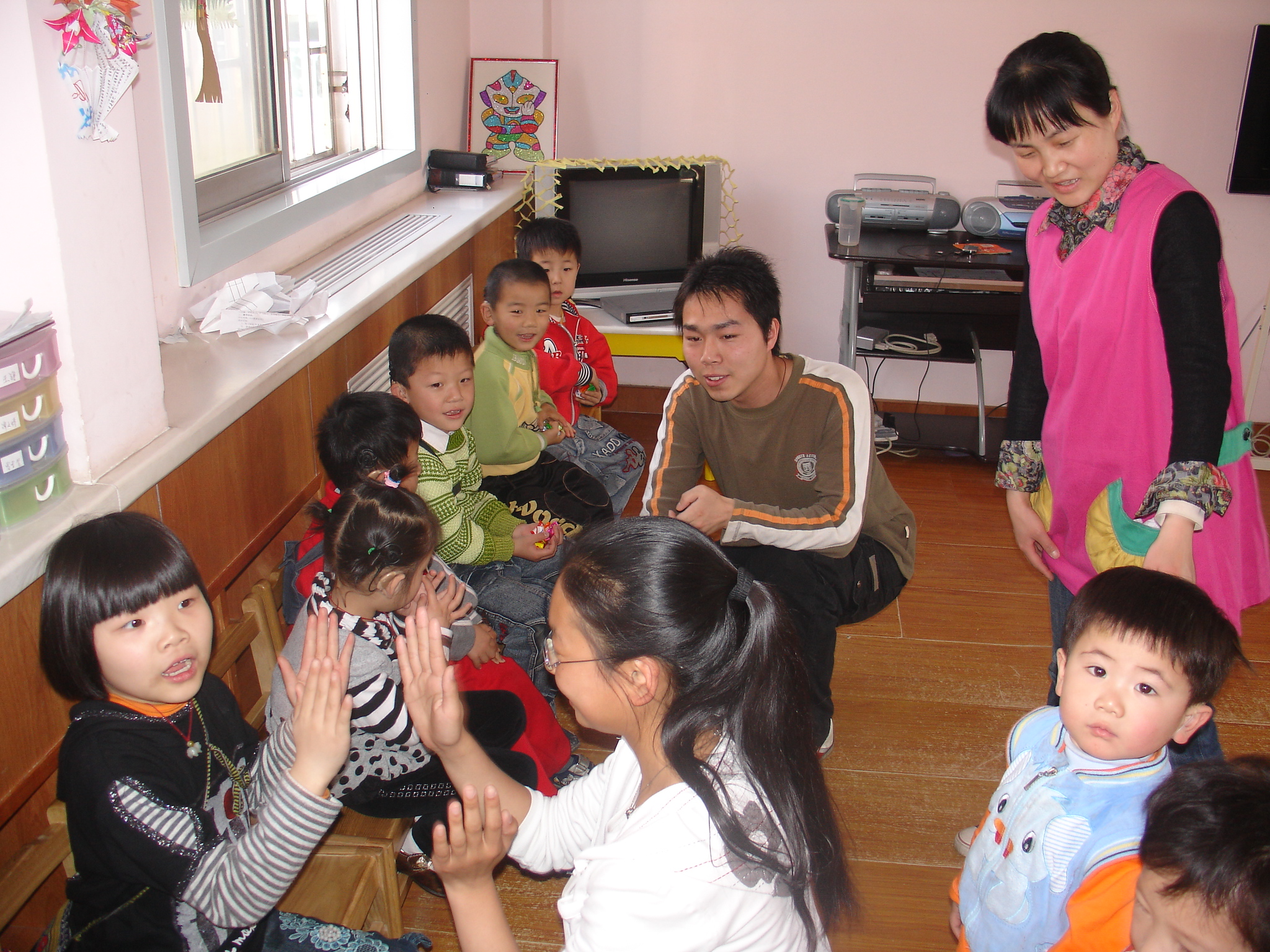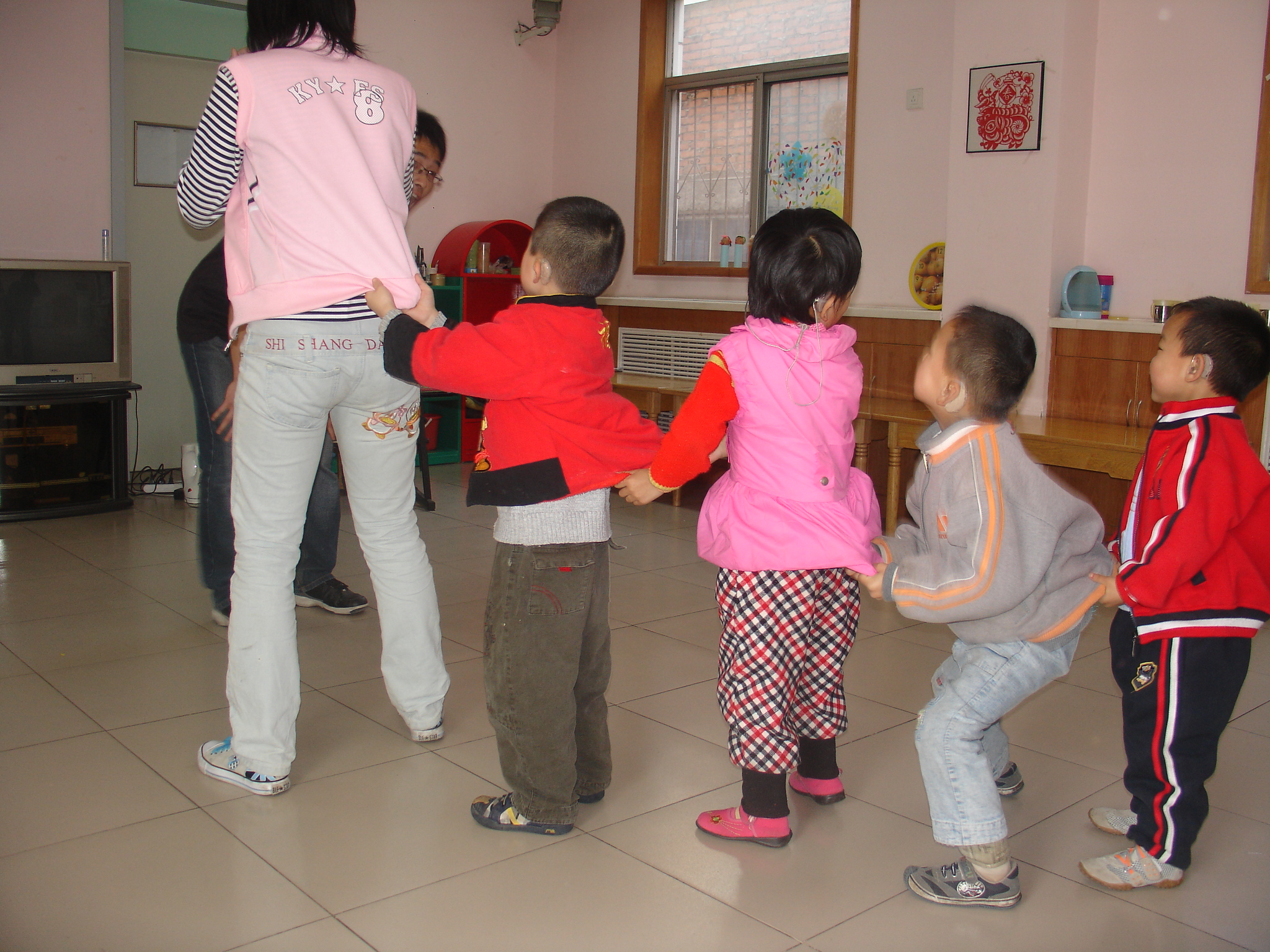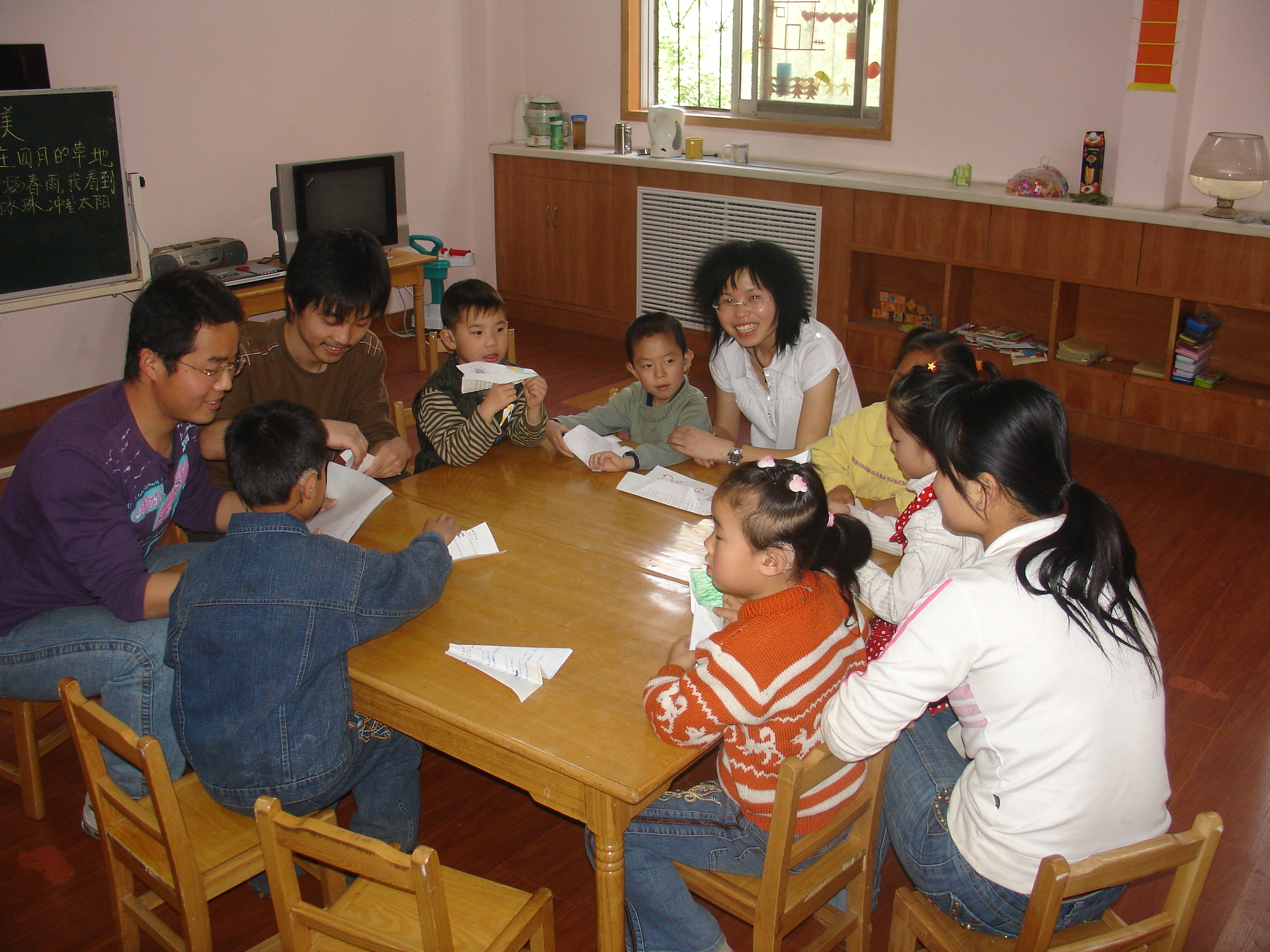 同学们一行分为六组,每一组负责和一个班级的小朋友一起交流、做游戏。虽然年龄差距很大,但并不影响相互之间的沟通,大家为他们带去了糖果和一些有趣的游戏,让孩子们兴奋不已。虽然孩子们都存在着弱听或弱视等方面疾病,但他们天真、灿烂的笑容点燃了每一位大学生爱的希望,他们快乐和自信的眼神使每一位同学都为之感动。