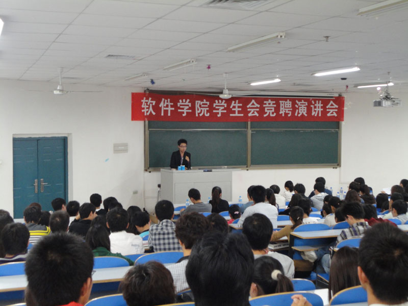首先,学生会进行了换届竞聘演讲大会,秘书长孙闪闪同学宣读了竞聘演讲评分标准,参与竞聘的08级同学按照事先抽好的顺序依次上台。竞聘选手们个个热情饱满,表达了对学生工作的热爱、当选后的想法以及落选后的态度,精彩的演讲不时的引来观众们的热烈掌声。根据演讲成绩,结合平时工作表现,最终确立了软件学院新一届学生会干部名单。