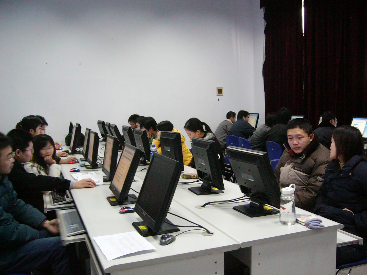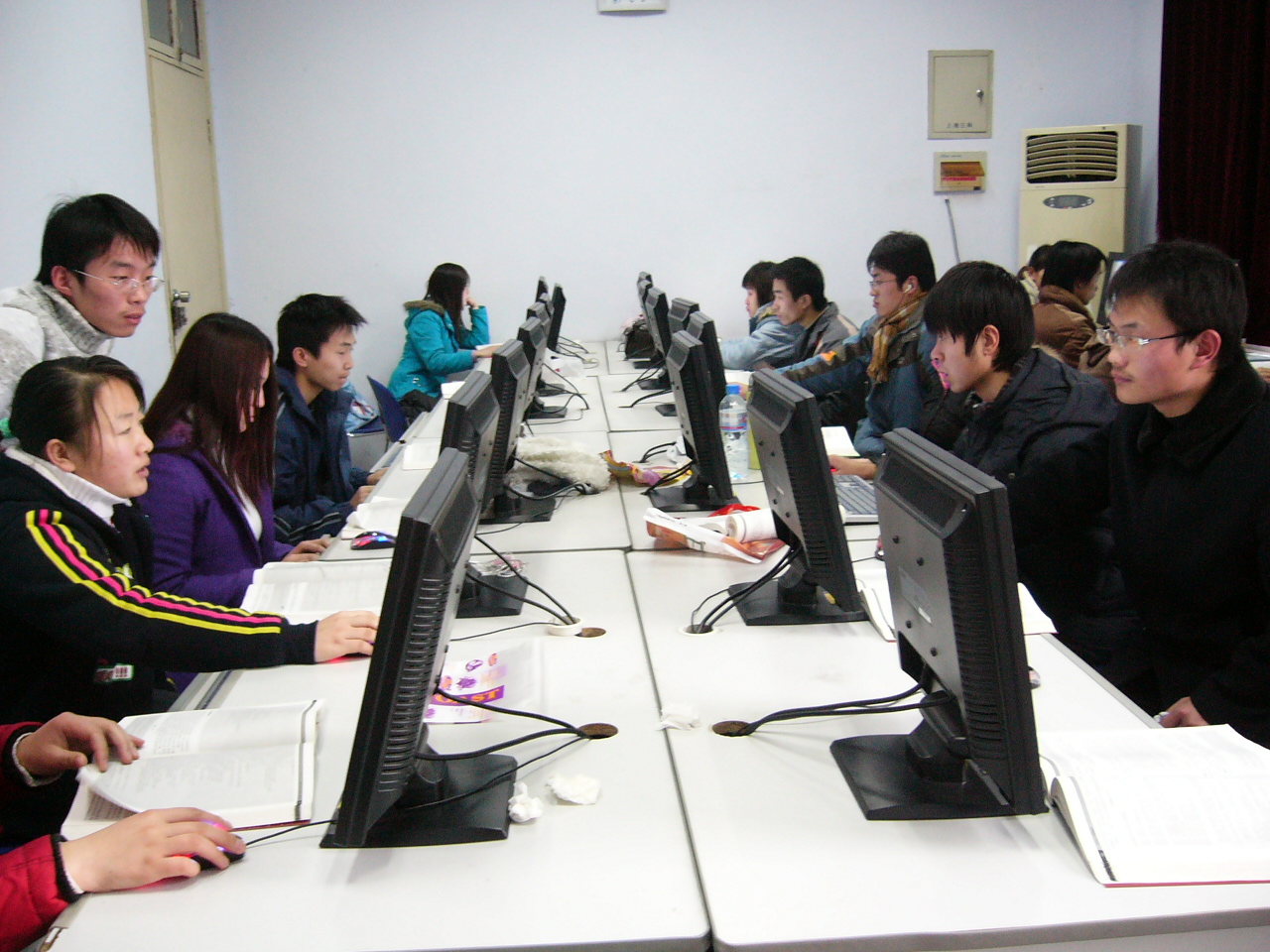 按照教学计划,本学期最后三周是05级高职高专学生的实训周。经过反复筛选和充分准备,为实训学生准备了“基于.net的Web应用程序设计”、“计算机组装与网络综合布线”、“基于Eclipse平台的Java程序设计”、“旅游探险网站在线订购系统的测试”、“Indisign平面排版设计”、“基于J2EE的Java应用程序设计”、“网络架构技术综合实训”等一系列真实的题目,以便充分打造学生的实践动手能力,尽可能实现零距离就业。由于实验设备和时间的压力,实训教学内容在新年第一天就开始了,外面天寒地冻,但实验室内却气氛热烈,带实训的老师(梁文静、李祖贺、胡东华、吉星、邓璐娟、王捷、范乃梅、陈源)牺牲休息时间,认真负责地、耐心地辅导学生,对每周要进行的工作按照天的工作量进行细化,使参加实训的同学每天都有非常具体的任务和目标,参加实训的同学都勤奋学习,不怕苦,早晨8点顶着浓雾走进实验室,团结紧张,集中精力学习和训练,下午6:30分完成当天任务结束实训后,往往天已经黑了,虽然有点累,但一身轻松。