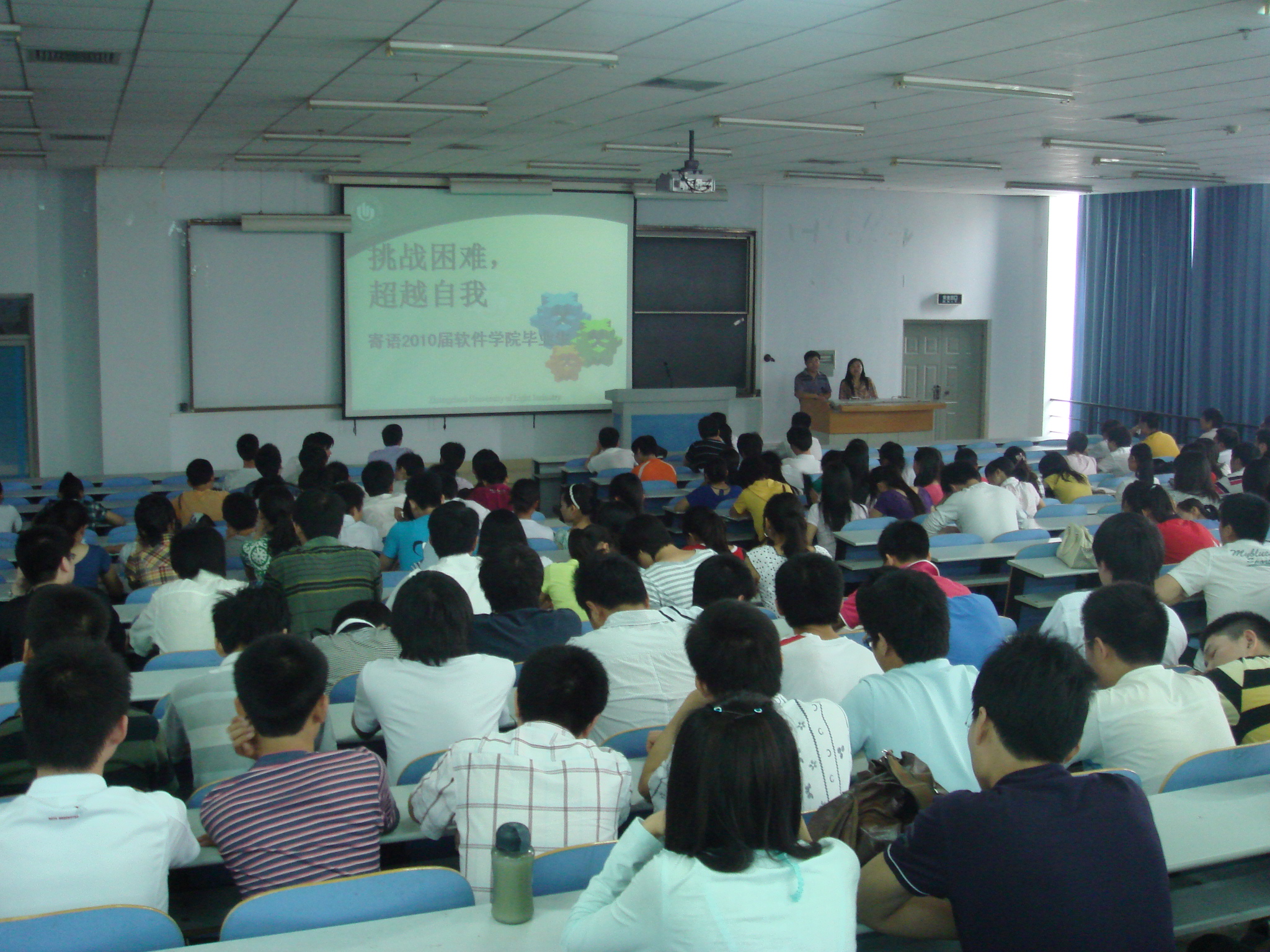 6月10日上午10点,软件学院在教三楼303召开2010届全体毕业生大会,软件学院副院长邓璐娟老师、党总支副书记康国磊老师、部分辅导员、负责就业工作的老师以及2010届全体毕业生参加了会议。