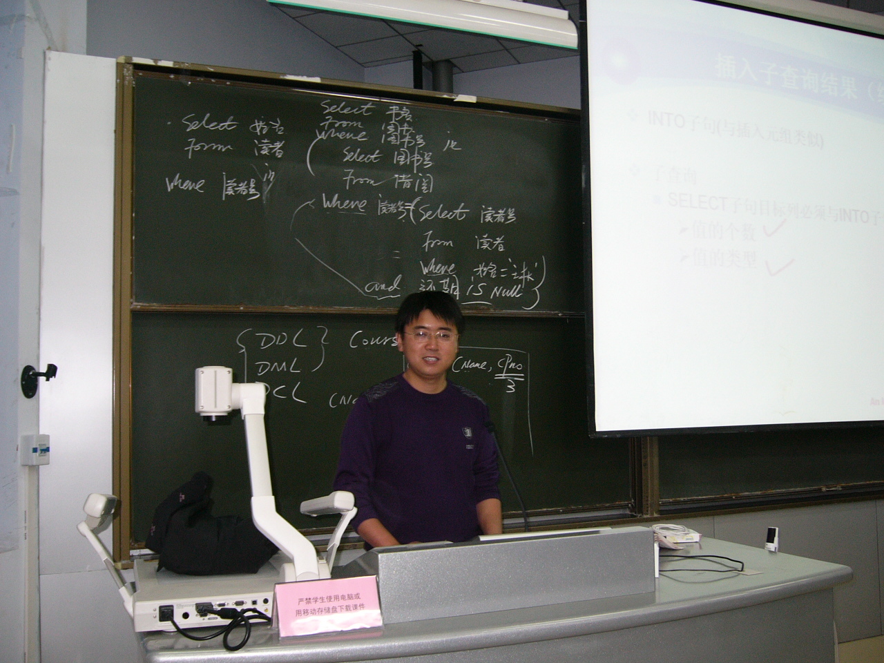 为了加强课堂观摩学习的效果,结合期中教学检查,软件学院开展了听公开课活动,2007年4月20日8:00—9:00,软件学院教师集体光临了教研室主任梁树军老师的《数据库原理》课堂,开展公开听课、学习和点评。梁老师的课堂教学效果好,通过实例进行启发诱导,师生积极互动情绪高,全体老师在思想上都受到了触动。