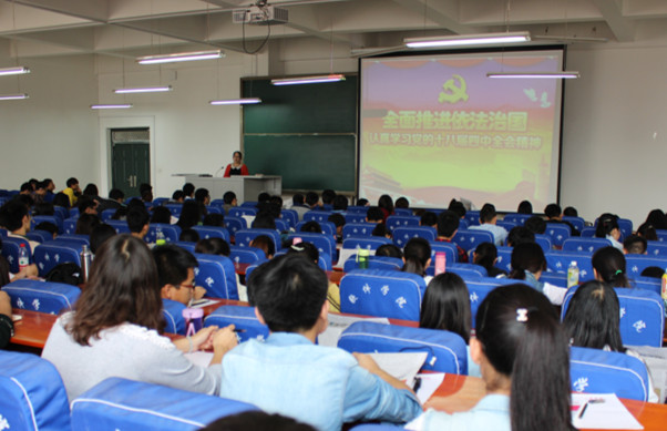 活动以一首《唱支山歌给党听》拉开了帷幕,主持人通过幻灯片简单介绍了入党流程,并引入竞赛的主题--“大学生如何树立正确的入党观念”。紧接着进入竞赛单元,首先是必答题部分,包括建党历史、党的纲领路线、党的先进人物与事迹等方面的问题,入党积极分子以班为单位进行轮流作答;然后是抢答题部分,在这一环节,各班互不相让,参赛队员聚精会神地听取题目并积极进行抢答,快速而准确的回答不时迎来大家的阵阵掌声,活动也随之进入到了高潮。最后,经过激烈角逐,共有6支班级代表队胜出,李辉老师给获胜班级颁发获奖证书,并结合正在召开十八届四中全会,要求大家了解十八届四中全会的内容,利用自己课余时间认真学习党的十八届四中全会精神。