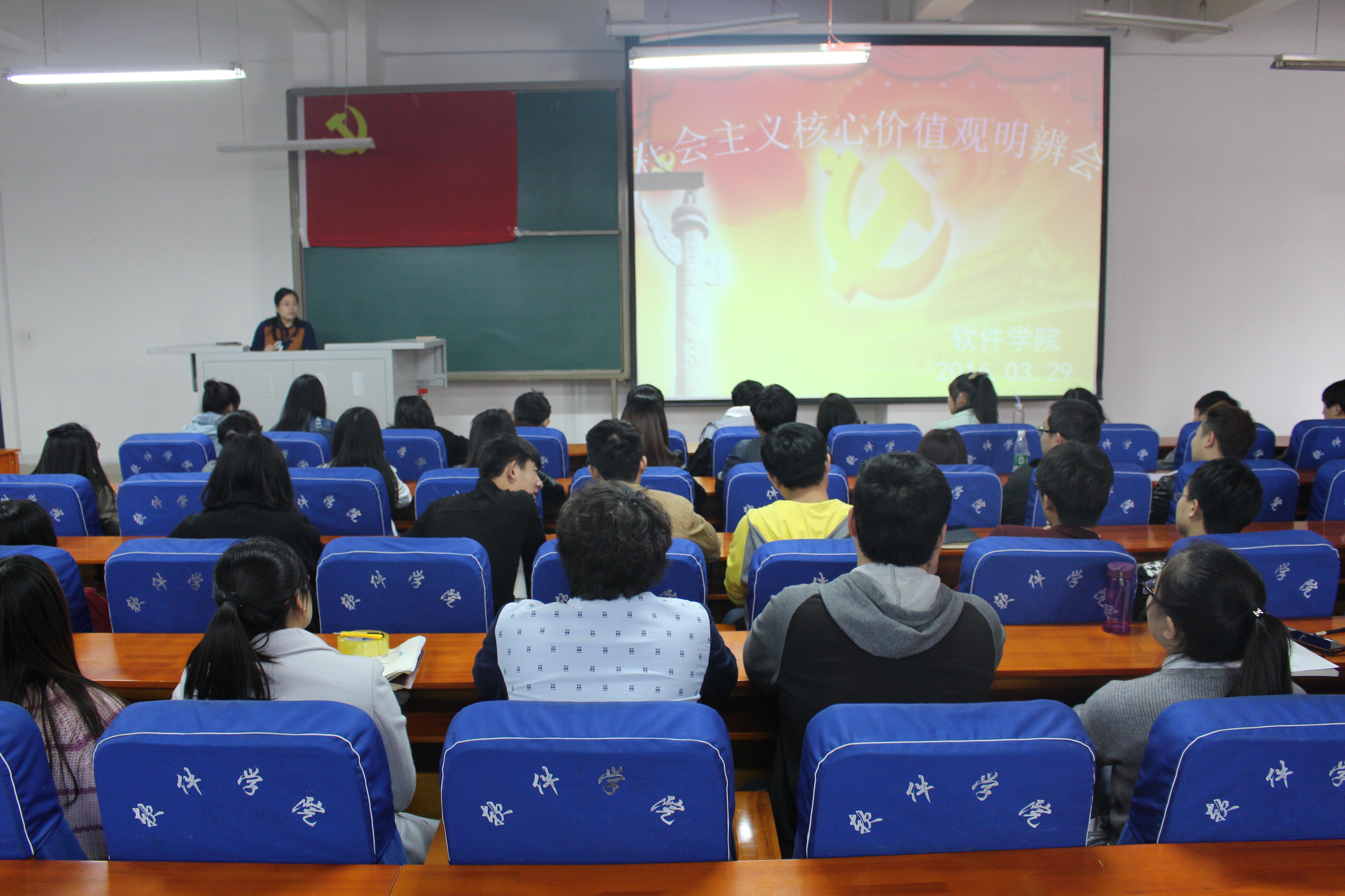 3月29日中午,软件学院在软件楼219教室举行社会主义核心价值观校园明辨会。软件学院全体学生党员和入党积极分子代表参加了本次活动。