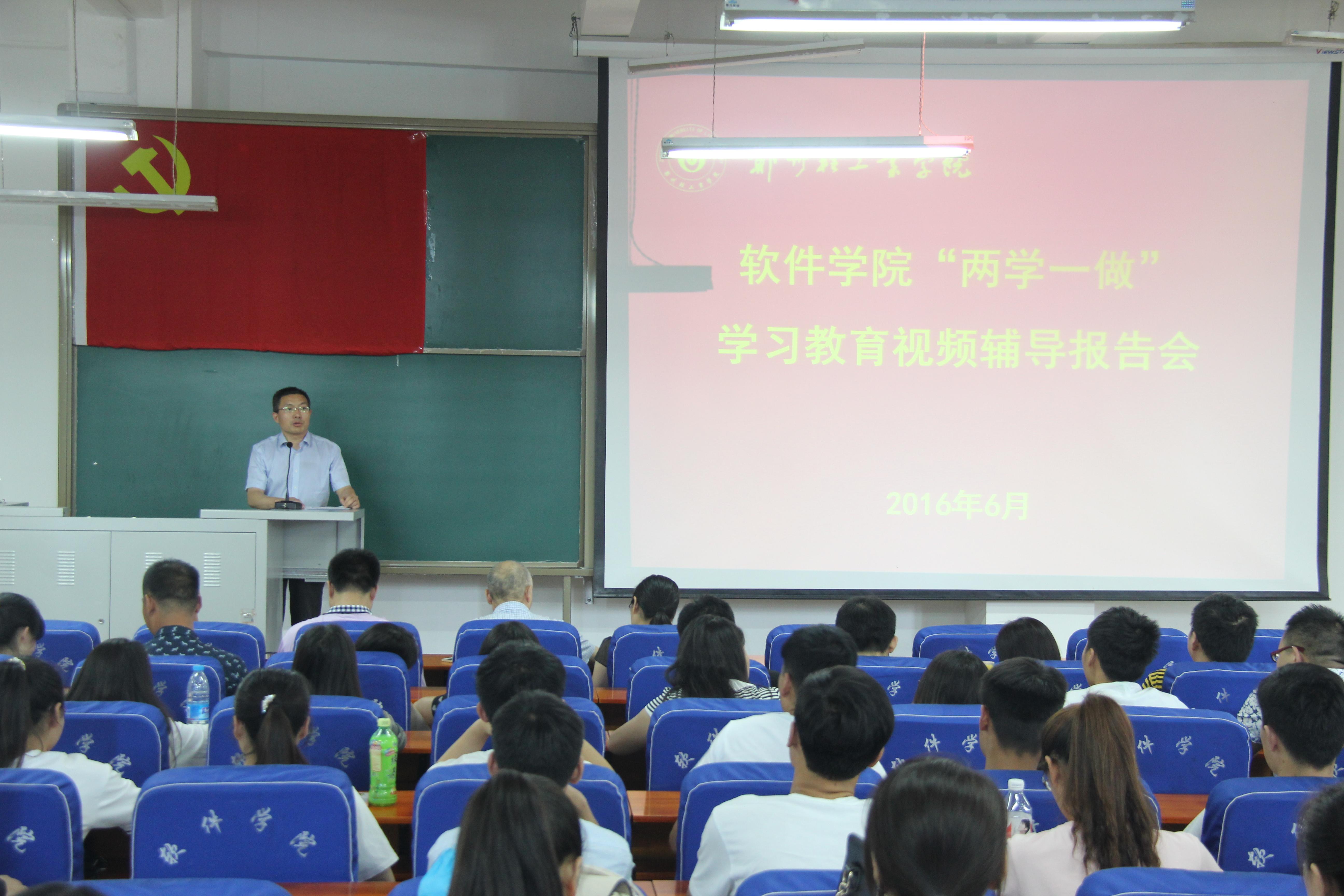 6月16日中午,我院在软件楼219组织全体党员集中观看中共中央党校刘春教授主讲的《开展“两学一做”学习教育重大意义和总体要求》的辅导视频。通过学习,全体党员进一步增强了对“两学一做”学习教育重大意义和总体要求的认识,加深了对“基础在学,关键在做”的理解,有助于科学把握学与做的辩证关系,学以致用,以知促行、知行合一,把学和做统一起来,贯穿于学习教育的全过程,积极投身尊崇党章、遵守党规和用习近平总书记系列重要讲话精神武装头脑、指导实践、推动工作的具体行动,更好地发挥党组织战斗堡垒作用和党员的先锋模范作用。