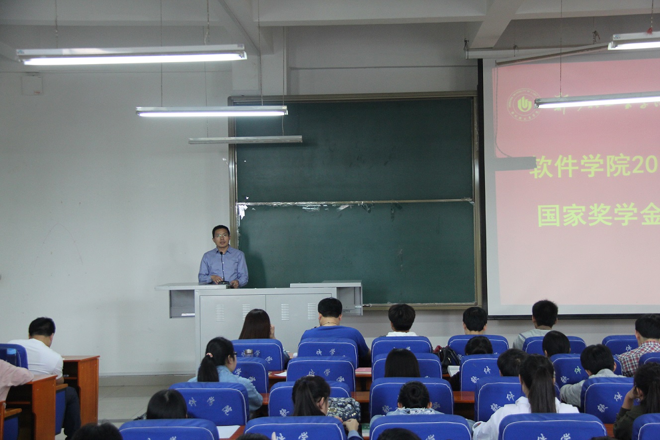9月29日,软件学院在科学校区软件楼219室成功举办2016年度国家奖学金评选答辩会,学院党总支书记武丰龙老师、全体专兼职辅导员老师担任评委。2013级、2014级、2015级学生代表参加了此次大会。