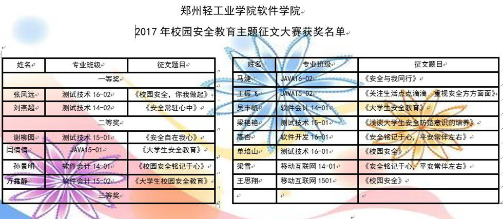 为提高广大师生的安全意识和防范能力,建设平安和谐校园,软件学院于3月15日-3月28日面向全院师生开展以“珍爱生命,安全先行”为主题的征文活动。