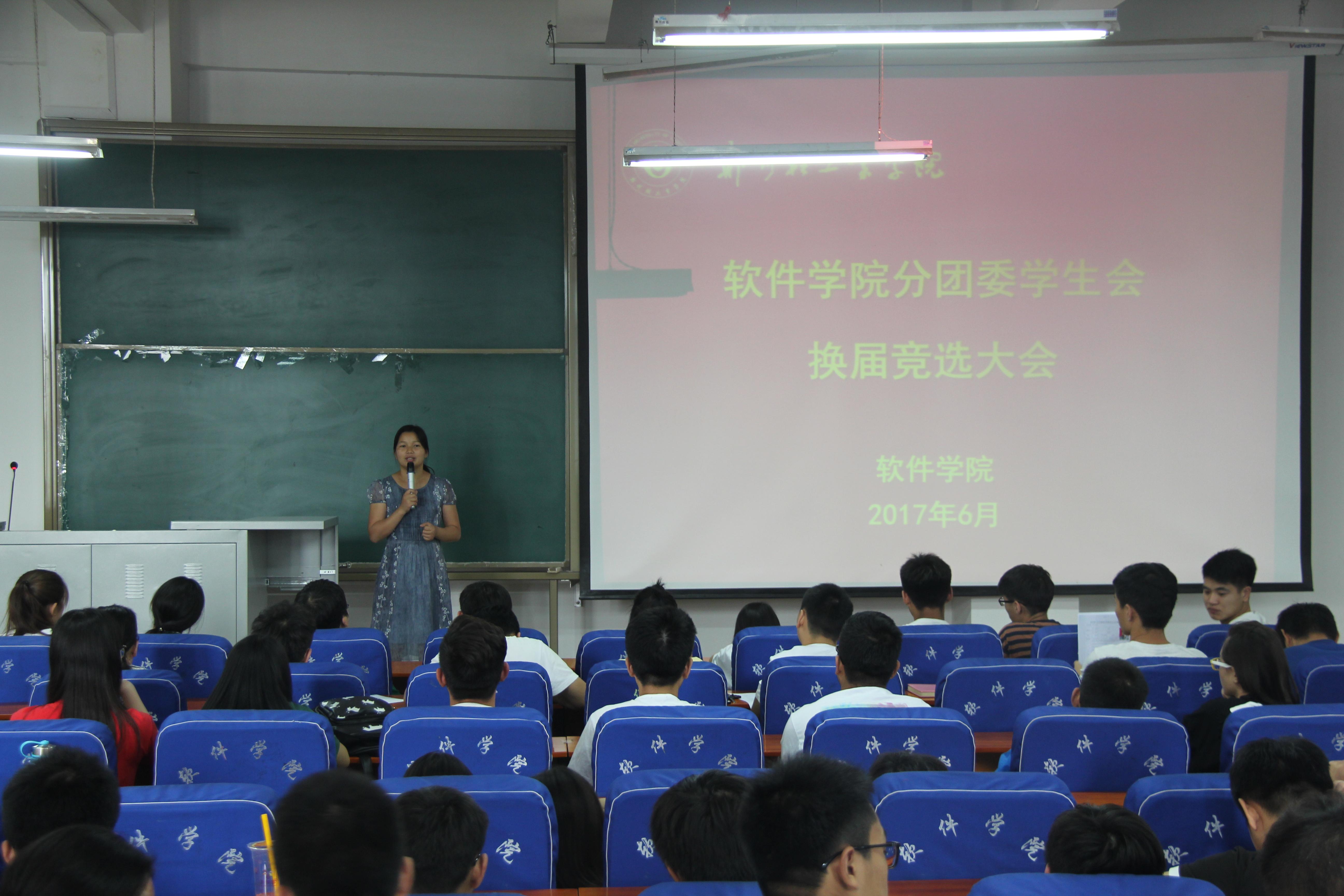 6月17日中午,软件学院第十二届分团委学生会干部竞选答辩会在软件楼219室举行。软件学院分团委书记刘放美老师、专职辅导员老师和十一届分团委学生会主席团成员参加大会并担任评委。