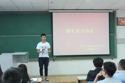 班会分为四方面的内容,第一,受资助同学从思想上、学习、生活上进行个人总结发言,与同学们共同分享自己的成长经历,同学们纷纷表达了自己受资助后对学校的感激之情及表示要个人以优异表现来报答国家的培养。第二,团支书就本班一年来的活动及参与情况,及班级个人德育学分做总结发言,梳理本学期的班级一年的综合表现,对积极参加活动的同学给予表扬,对落后同学提出批评和具体的建议。第三,由班长发出复习倡议及列出班级具体复习计划。最后,辅导员从期末备考、考风考纪、安全稳定等方面总结发言,希望同学们切实落实复习计划,遵守考试纪律,以积极的心态迎接期末考试。