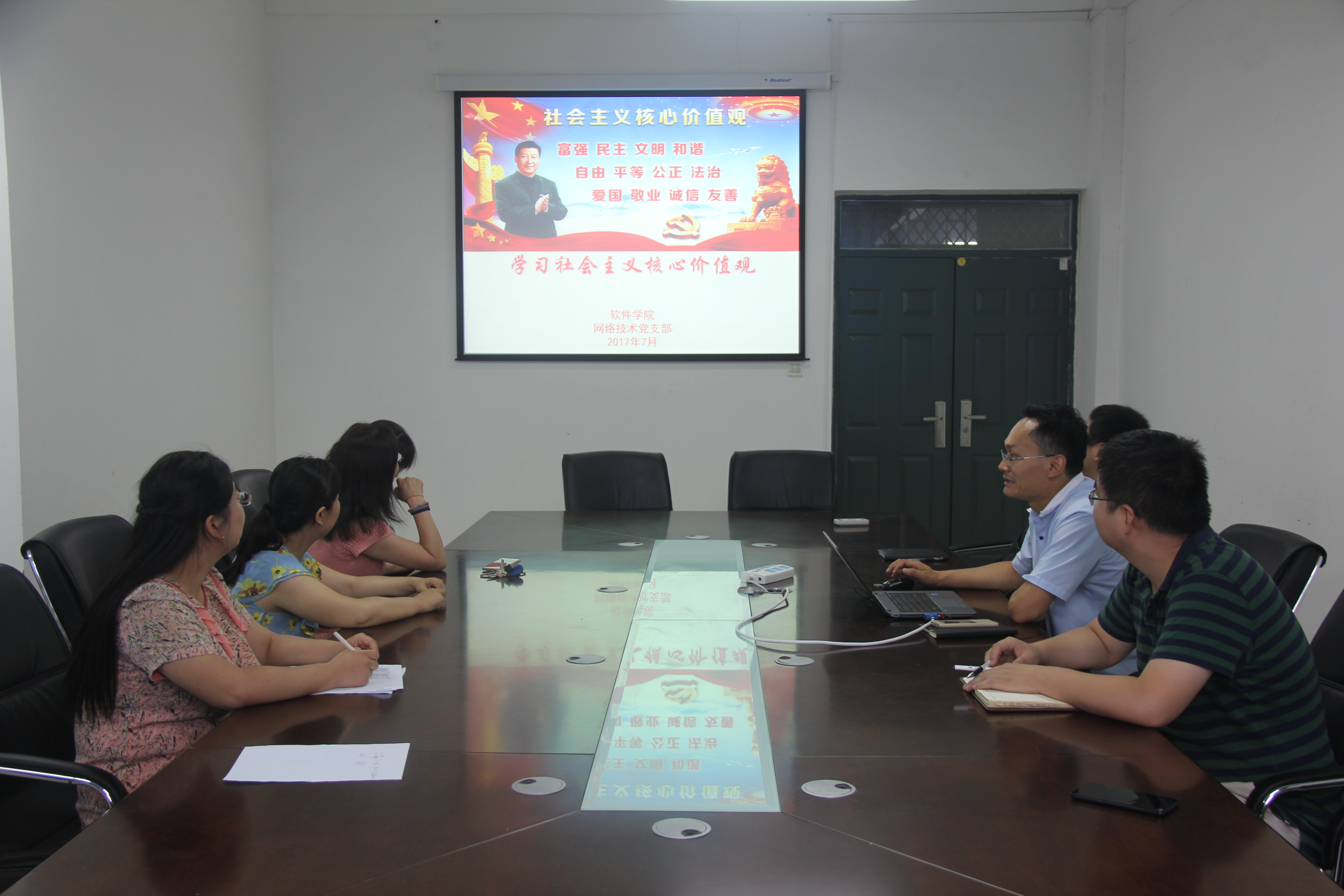 网络技术党支部在软件楼307开展以“践行社会主义核心价值观”为主题的专题党课。支部书记崔建涛首先带领大家学习了什么是社会主义核心价值观,以及习近平总书记关于社会主义核心价值观内涵的阐释,并要求教师将社会主义核心价值观融入人才培养全过程。通过专题党课学习,支部党员纷纷反映对社会主义核心价值观有了更深入的理解,对如何在工作生活中践行社会主义核心价值观有了新的认识。