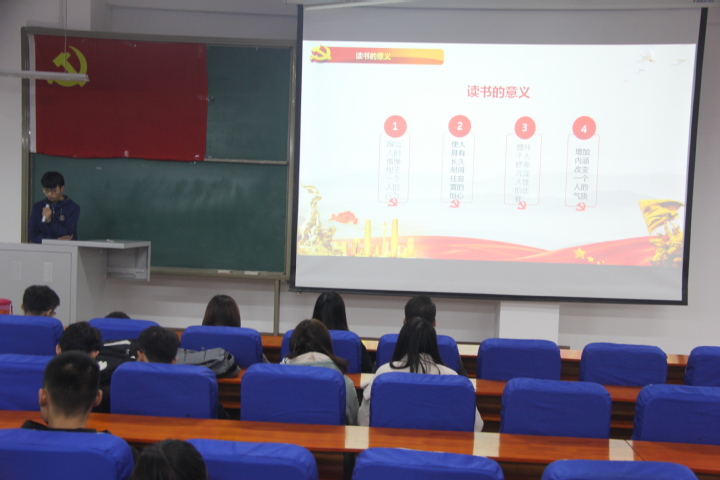 习近平总书记说:“文化是民族生存和发展的重要力量。”本次主题读书交流会共分为“了解世界读书日”、“如何选择书籍”、“读书的意义”三个环节。首先,主持人为大家介绍了世界读书日的来历,让同学们更好地了解这个节日的意义及内容。在如何选择书籍环节中,主持人推荐了《习近平的七年知青岁月》这本书,青年习近平在艰苦的环境中仍未放弃读书和思考,他的百折不挠,积极进取的精神让同学们深刻意识到读书的重要性。为了更直观的感受读书的魅力,大家现场一起观看了视频《窑洞里的读书人》,视频讲述了习近平总书记在陕西省延川县梁家河村插队期间,酷爱读书的故事,强调读书修身的重要性。最后,同学们围绕“读书的意义”的主题展开交流讨论,大家从不同的角度,阐述了自己在读书过程中的心得体会,展现了自身良好的文学素养,同学们的热烈掌声将活动氛围推向高潮。