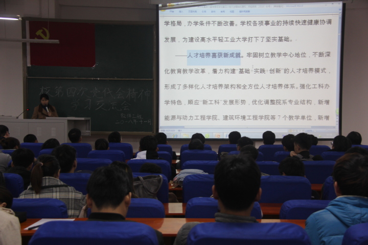 会上,刘放美老师传达了学校第四次党代会的精神,领学了俞海洛书记在党代会上做的题为《凝心聚力 攻坚克难 为建设高水平轻工业大学而努力奋斗》的报告,解读了报告内容三个部分:一、第三次党代会以来的工作回顾;二、面临的形势和目标任务;三、今后工作思路和主要措施;详细介绍了第三次党代会以来我校在多个领域实现的历史性突破和各项事业取得的长足进步。刘老师还要求各班级学生干部通过各种形式深入学习贯彻学校第四次党代会精神,为实现学校新的跨越式发展贡献青春力量。最后,同学们一起通过“郑州轻工业学院团委”微信公众号参加“郑轻微团课”活动,进行校第四次党代会知识的线上学习。