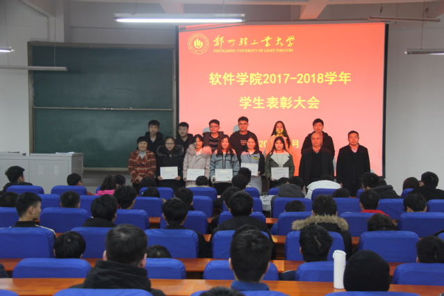 1月9日下午,软件学院2017-2018学年学生表彰大会在科学校区软件楼219室成功召开。学院党政领导、全体辅导员老师和获奖学生等近300人参加了会议。