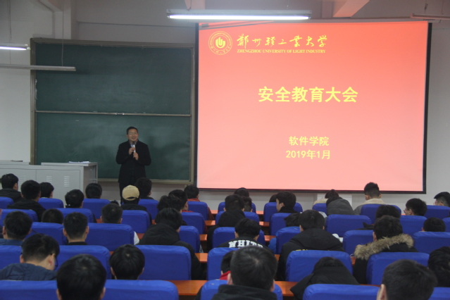 为切实加强学生安全教育管理工作,保障学生的人身及财物安全,避免意外事故的发生,维护学校正常的校园秩序,确保广大学生度过一个安全愉快的寒假,2019年1月9日下午,软件学院在软件楼219召开学生安全教育大会,软件学院党总支书记武丰龙老师、全体辅导员、300余各年级学生代表参加了大会。