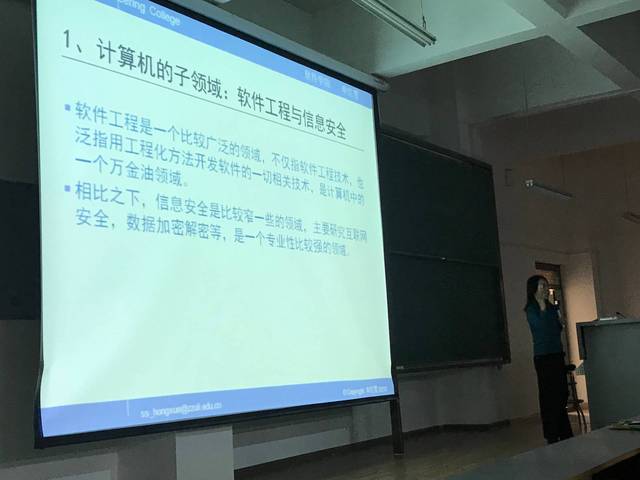 2018年12月24日上午,软件学院高级实验师申红雪在软件楼503作了题为“浅谈软件工程中的信息安全”的报告。报告会由软件学院副院长邓璐娟主持,软件工程18级全体学生302人和10位老师参加了报告会。