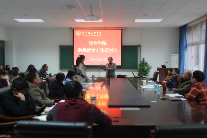 1月18日下午,软件学院在软件楼210召开寒假教学工作研讨会。学院全体教职工参加会议,会议由副院长邓璐娟主持。
