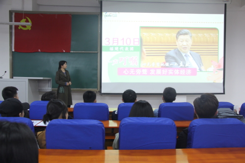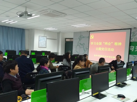在各支部活动现场,师生党员深入学习观看了习近平总书记在今年全国两会期间六下团组的微视频《习近平的两会足迹》,认真学习深刻领会习近平总书记在全国两会期间的重要讲话精神和李克强总理在第十三届全国人民代表大会第二次会议上作的政府工作报告,从政府工作报告中大家了解了2018年政府工作成就、2019年政府工作目标以及2019年政府重点工作等方面内容。