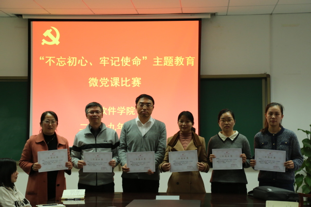 为持续推进“不忘初心、牢记使命”主题教育,11月28日下午,软件学院在软件楼210室举办“不忘初心、牢记使命”主题教育微党课比赛。学院六个基层党支部推荐优秀选手参赛,党总支委员担任比赛评委。