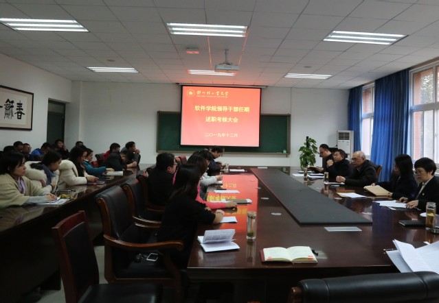 12月20日下午,软件学院领导干部任期述职考核大会在软件楼210室召开。校纪委副处级纪检员崔建平和学院教职工参加了大会。会议由党总支书记武丰龙主持。