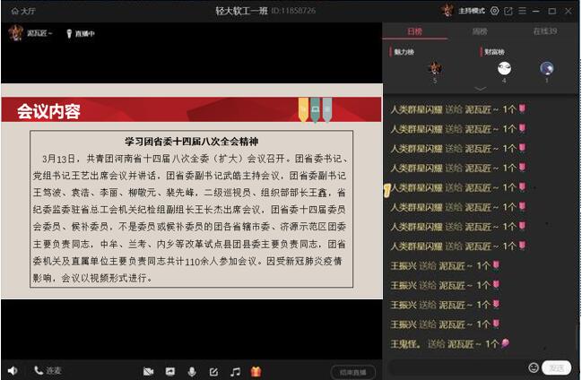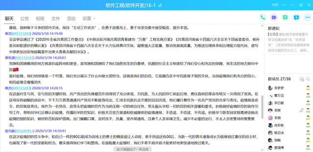 为深入学习共青团河南省十四届八次全委(扩大)会议精神,把思想和行动统一到全会的决策部署上来,提高政治站位、统一思想认识、切实扛起新时代共青团员责任使命,3月28日-30日,软件学院以团支部为单位,开展线上学习会议精神主题团日活动。