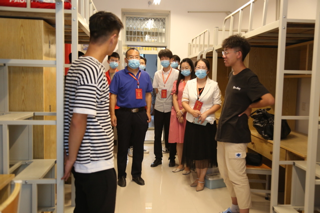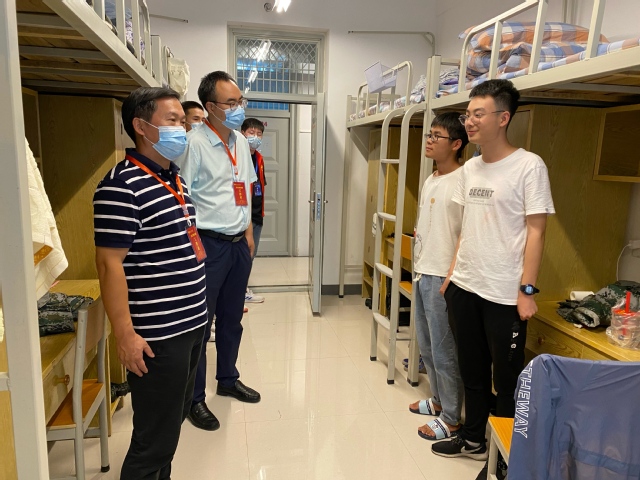 在学生宿舍,学院领导老师逐间走访新生宿舍,细心询问聆听了新生们入校生活感受,详细了解同学们的家庭情况,主动帮助同学们释疑解惑。辅导员鼓励同学们要积极融入集体生活,把学院当成自己的家,与其他学友要和谐相处、互相帮助,特别强调要注意人身安全,做好疫情期间的防护工作,保管好个人财物,提高自理、自立能力,让父母和老师放心。老师叮嘱同学们要珍惜美好时光,充分利用学校和学院提供的资源等和条件,认真学习专业知识,积极培养兴趣爱好充实大学生活,同时转变学习方式,养成主动学习的习惯,培养自主学习的兴趣,养成健康的个人作息及卫生习惯,以良好的“舍风”促进“学风”。