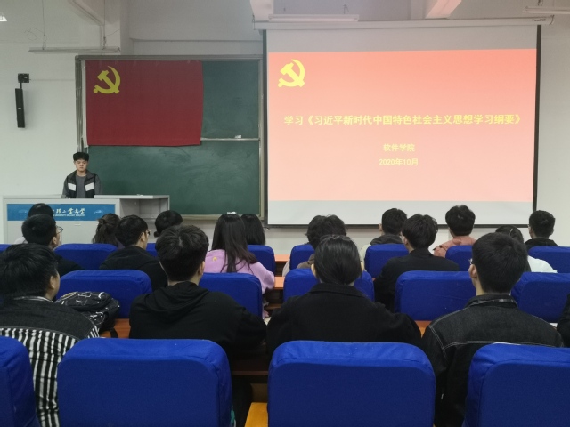 为了让同学们学习贯彻习近平新时代中国特色社会主义思想,增加同学们的使命意识,软件学院于10月29日在软件楼219举办了“怀揣梦想 奋力前行”主题教育,软件学院第64期积极分子参加此次大会。