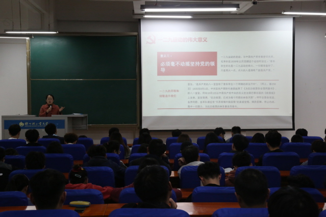 此次活动以“坚定跟党走、筑梦新时代”为主题,李辉老师首先带领同学们回顾了一二•九运动的背景以及过程,强调了一二•九运动是中国共产党领导的一次大规模学生爱国、抗日救亡运动。李老师进一步讲述了一二•九运动的历史意义,指出“全国人民必须团结一致”,“必须毫不动摇坚持党的领导”,“青年一代要有理想有担当”三大主要精神要义。随后同学们讨论了一二•九运动精神对当代大学生的指导意义,纷纷表示,要努力学习科学文化知识,提升自身综合素质,为中国梦的实现奉献自己的青春力量。