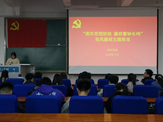 为了让廉洁之风进校园,加强我院思想政治建设,软件学院于11月19日在软件楼219举办“筑牢思想防线 廉政警钟长鸣”党风廉政主题教育。软件学院第64期入党积极分子,党团工作室指导老师魏冉及全体工作人员参加了此次活动。