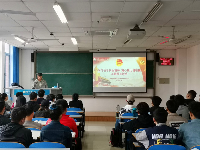 2020年11月7日,学校召开了18新利直播 第十一次学生代表大会,会议审议通过了学校第十届学生会(研究生会)工作报告,通过了《学生会章程(修正案)》和《研究生会章程》,选举产生了新一届学生会(研究生会)主席团,校党委副书记张志坚教授在会议上发表了重要讲话,对各级团学组织、学生会工作人员和广大学子寄予了殷切的希望。在“学习校学代会精神 凝心聚力谱新篇”主题团日活动中,各团支部负责人带领广大团员学习了校党委副书记张志坚教授的重要讲话精神、我校第十一次学代会选举流程及结果、学生代表大会制度相关知识以及我校学生会组织改革情况。张书记在我校第十一次学代会讲话中要求,团学组织要坚定改革决心,把握发展大局大势;要引领学习成长,助力学生全面发展;要增强政治意识,筑牢青年思想根基;要勇于竞相出彩,服务学校发展大局。广大团员纷纷表示,要结合自身的学习工作实际,认真思考,学深悟透讲话精神,争做合格的新时代大学生,为学校新的发展贡献力量。