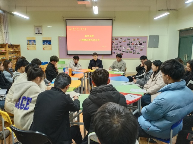 11月30日,软件学院在软件楼109室召开心理健康工作会议。各班级心理委员和心理健康教育办公室全体成员参加会议,会议由学院心理健康教育专职辅导员刘智文老师主持。