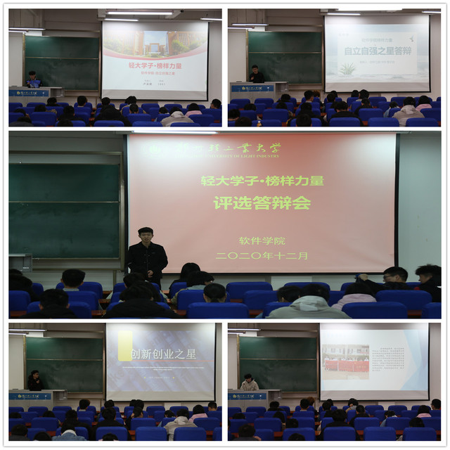 为充分发挥大学生榜样作用,传递青春榜样正能量,12月18中午,软件学院在软件楼219室举办第六届“轻大学子·榜样力量”评选答辩会。软件学院专职辅导员和各班级推荐的候选人参加了评选大会。