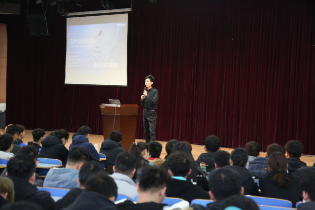本次报告会由大连东软教育科技集团王悦老师主讲,主题为“5G时代互联网行业趋势”。针对本次学术报告,王悦老师首先从万物互联的大背景讲起,详细的讲解IT行业优势和IT市场需求。随后围绕目前所处的软件行业的机遇,以行业一线架构师的视角阐述了计算机领域学生的发展道路,将软件工程学生的几个求职方向:前端、后台、数据库、大数据,嵌入式、机器学习、产品经理等,一一做了分析,王老师指出:要意识早、行动早、准备好、心态好,并且要牢牢把握目前国家经济发展中的科技第一位的优势,将个人发展融入到行业和国家的命运中来。报告会最后,王老师与在场的学生进行了互动讨论。