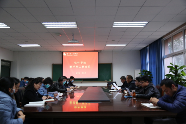 2月28日下午,软件学院在软件楼210会议室召开新学期全体教职工工作会议,学习传达学校2021年工作会议精神,安排部署学院学期初各项工作。会议由院长张素智主持。