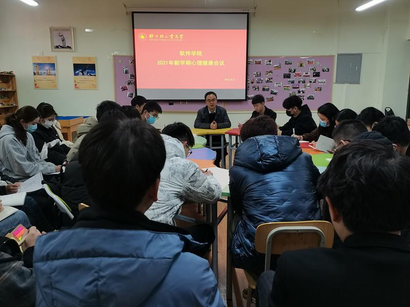3月2日中午,软件学院在软件楼109室召开新学期心理健康教育工作会议。学院党委副书记马欢老师,全体心理健康教育办公室成员和各班级心理健康委员参加了此次会议,会议由学院心理健康教育专职辅导员刘智文老师主持。