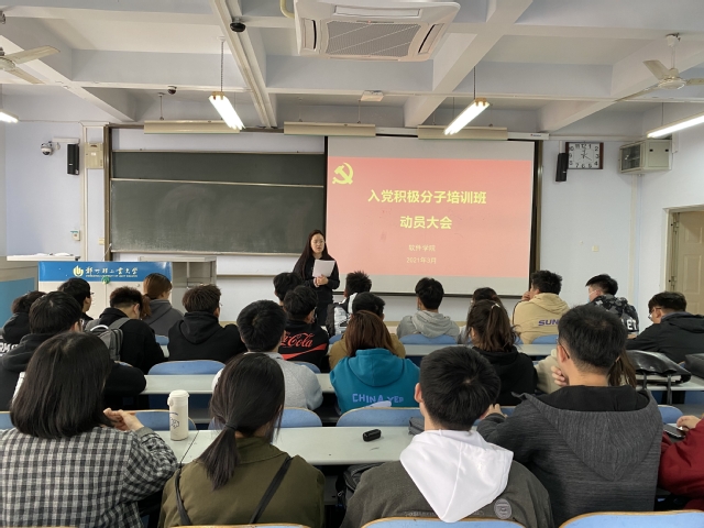 为进一步加强对入党积极分子的培养教育,切实提高入党积极分子的党性觉悟,端正入党动机,软件学院于3月16日、18日分别在东风校区教三楼605和科学校区软件楼219召开了入党积极分子培训动员大会。软件学院第65期入党积极分子、党团工作室魏冉老师及全体工作人员参加了该大会。
