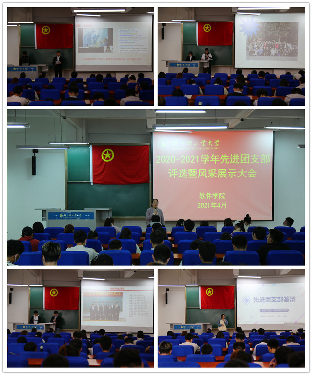 在评选大会上,各团支部通过演讲和PPT展示向与会人员汇报上一年支部在思想建设、组织建设、学风建设、志愿实践、创新创业、文体活动等方面的工作开展情况并提出了本学年的工作展望,各团支部的汇报内容还特别增加了党史学习等相关情况。过去的一年,各支部在践行社会主义核心价值观、学习党的十九大精神和习近平新时代中国特色社会主义思想,贯彻习近平总书记系列重要讲话精神等方面取得了较好的效果;在班风、学风建设上取得了可喜的成绩;在国家、省市、校级竞赛中取得了丰厚的硕果。经评委小组认真评定,共推选出软件工程2018级2班团支部等6个校级先进团支部。