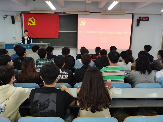讨论课开始,主持人从学习目的、学习内容、意识培养以及新时代如何砥砺前行四个方面,全面深入地阐述了习近平新时代中国特色社会主义思想的重大意义。接着,主持人带领全体同学学习《三十讲》主题系列视频,在座的同学们认真观看,反响热烈,并纷纷对《三十讲》提出自己的看法和观点,表示新时代的新青年应当“不忘初心,牢记使命”。