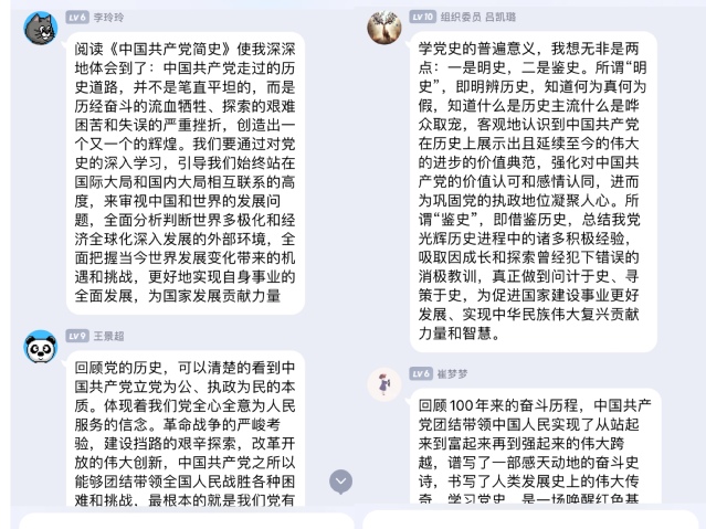 读书会开始王冠玺老师就《中国共产党简史》的内容进行简要分享。《简史》共10章,70节,约28万字,充分吸收党史研究最新成果,以史论结合的形式,重点叙述和评价重大历史事件和重要历史人物、重大方针政策和重要战略部署、重大理论创新成果及其发展历程;深入阐释中国共产党为什么“能”、马克思主义为什么“行”、中国特色社会主义为什么“好”的道理;着力弘扬中国共产党人的崇高革命精神和风范;深刻解读历史性变革中蕴藏的内在逻辑,历史性成就背后的道路、理论、制度、文化优势,文风朴实、通俗易懂,是全党特别是基层党员干部学习党的历史的重要读物。支部书记王冠玺老师领读了《简史》第一章,组织委员李英杰老师领读了第二章的并分享感悟。随后每位党员分别按章节分享自己的阅读感悟。同学们纷纷表示通过研读《中国共产党简史》,更加了解中国共产党过去一百年的辉煌历史,也更加清楚未来前进的方向,深感当今稳定而繁荣的社会局面是多么的来之不易,也深深地体会只有永远跟着共产党,才能最终实现中华民族伟大复兴的中国梦。