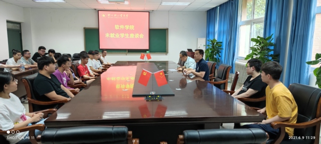 6月9日上午,软件学院在科学校区软件楼210会议室召开2021届毕业生就业精准帮扶座谈会,学院党委副书记马欢、就业专职老师和未就业毕业生参加了座谈会。