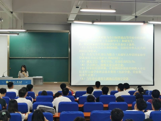 会上,吕老师首先向在场的同学们解读了国家助学贷款相关政策,她指出,党和国家高度重视家庭经济困难学生的资助工作,学校认真贯彻落实相关政策确保家庭经济困难学生健康成长成才并顺利完成学业,希望同学们培养自主、自立和自强精神,合理使用贷款,以更加积极的态度和更加饱满的热情来对待自己的学习和生活,为同学们树立榜样,起好带头作用,早日成为国家栋梁之才回报社会。接着,吕老师详细讲解了针对不同情况(首贷/续贷)所需的手续和流程,介绍了学生贷款申请所需材料的填写规范和高校助学贷款网上注册申请操作流程,为学生申请中存在的疑问进行了耐心解答。最后,吕老师提醒同学们要提高安全防范意识,学会甄别不良贷款与合法贷款,引导同学们树立正确的消费观。