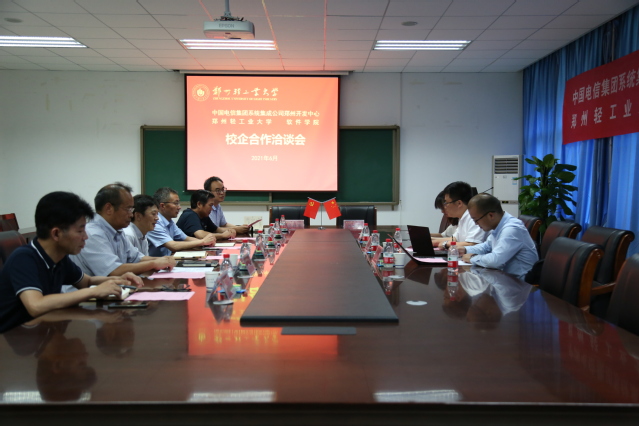 6月29日下午,中国电信集团系统集成公司郑州开发中心总经理郭建章先生一行3人到访软件学院,学校毕业生就业指导中心主任万顺国、软件学院领导班子会见了郭建章先生一行,双方在软件学院210会议室召开了校企合作洽谈会,会议由软件学院党委副书记马欢主持。