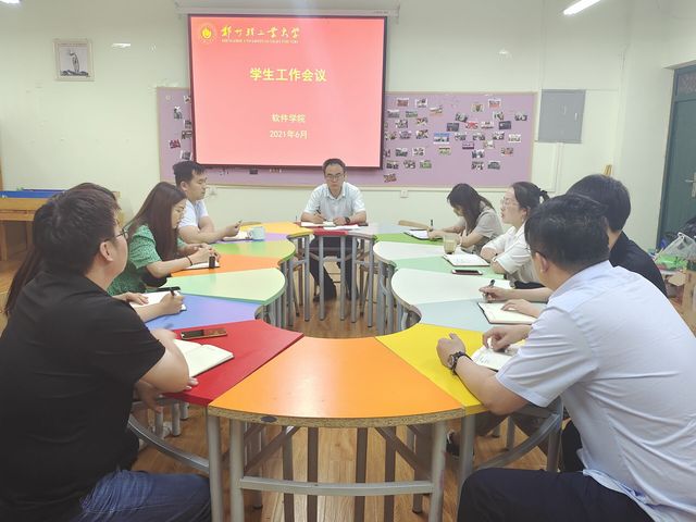 6月30日下午,软件学院在软件楼109室召开2020-2021学年第二学期期末学生工作会议,学院党委副书记马欢,及全体专兼职辅导员参加了此次会议。