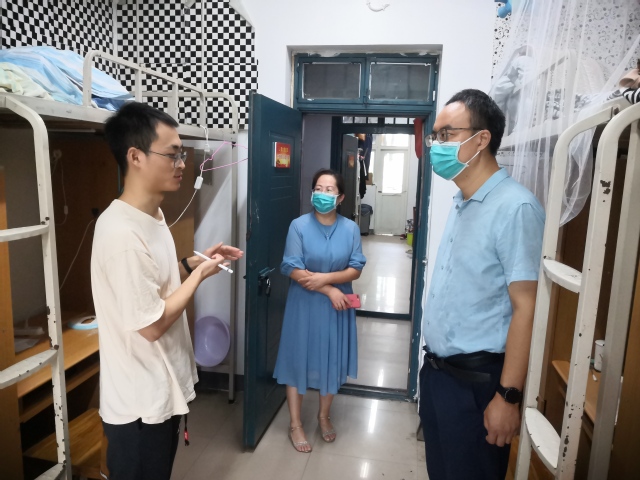 检查过程中,武丰龙书记一一询问留校学生的学习生活状况,提醒同学们一要严格遵守疫情期间的学生管理规定,坚持非必要不外出,不聚集、不串门、不扎堆;二要搞好实验室、宿舍的卫生,勤打扫、常通风,营造好健康的学习生活环境;三要注意用水用电安全,人走断电,严禁使用大功率违章电器;四要加强体育锻炼,养成良好的学习生活习惯,理性科学的看待疫情;五要珍惜在校的学习机会,完成好导师安排的科研任务和学习任务;六是要落实好留校学生疫情防控网格化管理,各级网格长要增强责任感、守好责任田,有异常情况及时上报。