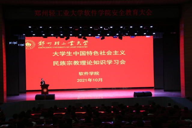 10月27日,软件学院在东风校区大礼堂开展2021级新生“大学生中国特色社会主义民族宗教理论知识学习会”主题教育,学院团委书记李辉、新生辅导员、全体21级新生及高年级团员干部参加活动。
