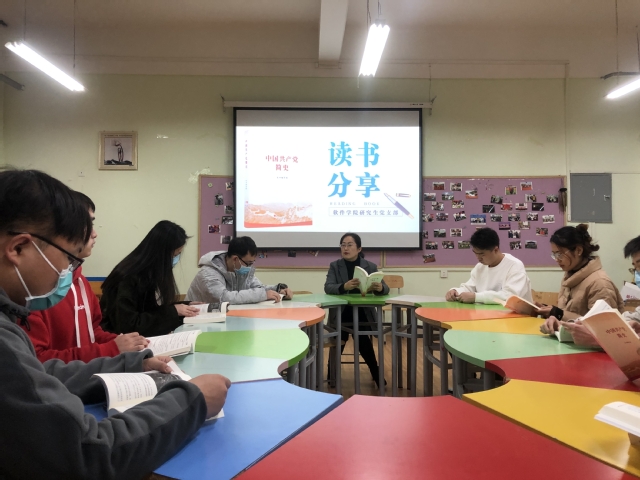 为推进党史学习教育,11月23日下午,软件学院组织研究生党员在软件楼109室开展学党史读书会第三期,本次读书会选读的书籍为《中国共产党简史》,读书会由支部书记李辉主持。