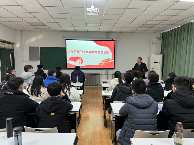 张素智院长以“学习党的十九届六中全会公报”为题,介绍了十九届六中全会的议程、内容及重大意义。他结合我党历史上的三个历史决议对比分析,概括出了新决议的特点、创新点,鲜明阐述“两个确立”这一科学论断的核心要义,概括了中国共产党百年奋斗的四个伟大成就、五个历史意义、十条宝贵经验,总结了党领导我国教育事业的百年奋斗历程和伟大成就,对同学们如何学习贯彻十九届六中全会精神提出了建议。张院长强调,青年学生要积极响应党中央号召,大力弘扬伟大建党精神,勿忘昨天的苦难辉煌,无愧今天的使命担当,不负明天的伟大梦想,坚定理想信念,发扬斗争精神,为实现第二个百年奋斗目标、实现中华民族伟大复兴的中国梦而不懈奋斗。
