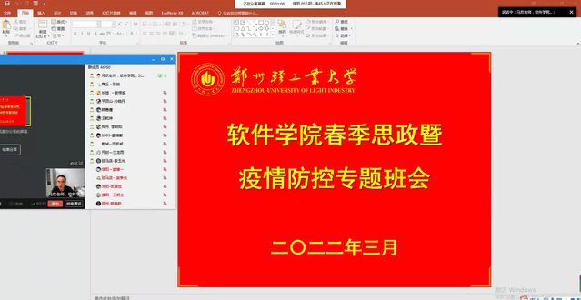 3月17日-18日,各年级辅导员相继召开主题班会。会上,各年级辅导员传达了上级工作会议精神和学生工作安排,介绍了当前疫情防控工作的严峻形势,宣读了《关于加强学生疫情防控的告知书》。要求在校学生严格落实疫情防控工作规定,非必要不离校、不离郑,严格请销假制度;坚持每日健康打卡及“日报告”“零报告”制度,在校内公共场合务必正确佩戴口罩;保持良好的个人卫生习惯,定期开展宿舍卫生清扫和通风,减少外卖及网购。