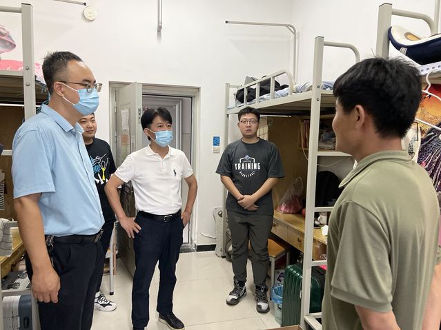 在学生宿舍,学院领导老师和同学们亲切交流,询问学生假期学习生活情况,叮嘱同学们要严格遵守疫情防控期间的有关规定,严格按照要求落实三天两检,做好个人防护,以饱满的热情迎接新学期。随后,学院领导向同学们传达了下一步研究生宿舍的搬迁计划,深入了解了同学们关于搬迁的意见和建议,并解答了同学们关于宿舍搬迁后如何通行、新宿舍是否配备热水房等问题,为接下来研究生宿舍搬迁计划顺利开展奠定了良好基础。